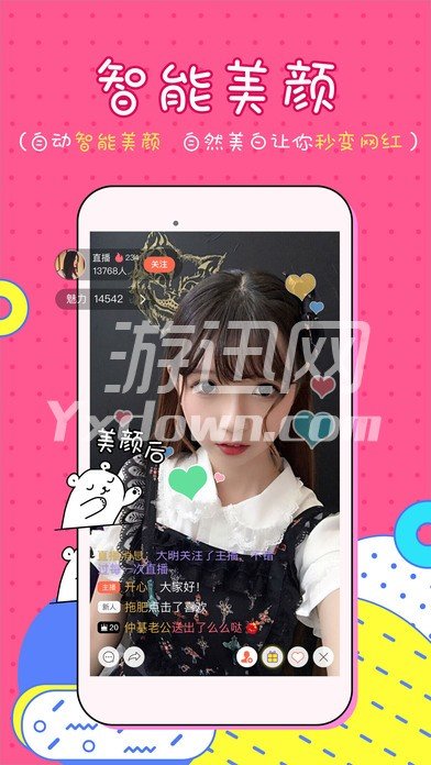 【自由开播】:夜宵撸串,比基尼派对,任何地方,举起手机直播生活点滴 【智能美颜】:智能跟踪美颜,让你永远展现最美的一面 【表白礼物】:看中主播放手撩求爱礼物给你准备好 【发现精彩】:各种娱乐游戏,让你看着主播玩的更嗨 【优质】:主播优质不LOW,全民颜值担当