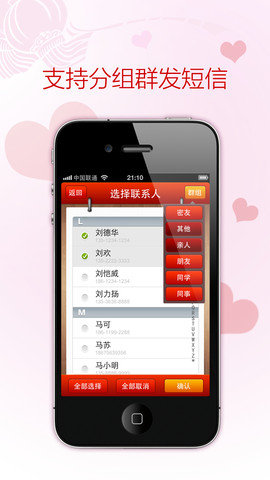 祝福拉近你我距离,从其他网站导入好友生日,倒数日温馨提醒,新增数十种纪念日提醒,支持分组群发短信。