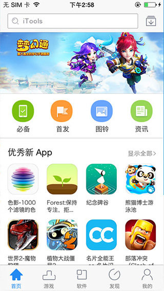 iTools手机版是一款为广大苹果用户量身打造的系统工具。该软件收录最新、最全的应用,让您挑选使用。同时还有实时资讯,让您轻松浏览阅读哦!