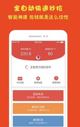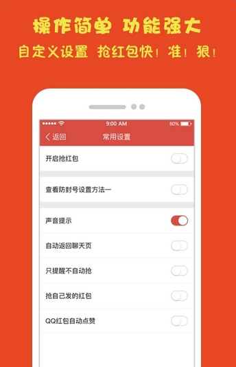 1.自动抢红包速度超快,锁屏也能抢。