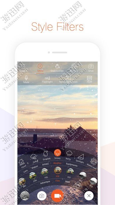 特殊效果过滤器:怪兽,变形,截图,艺术,天气,器材过滤器6个范畴的共计40项。用过滤器和叠合在一起使用的事可能。