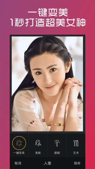 1.【美肤自拍】 一键变美:一键瘦脸大眼美肤,打造超美女神 夜自拍:昏暗环境也能让自拍美美的 美肤:磨皮、美白、肤色调节,让皮肤更光滑细嫩哦 塑颜:塑型、大眼、瘦脸随心所变 美肤特效:10款美肤自拍特效,让照片更多惊喜