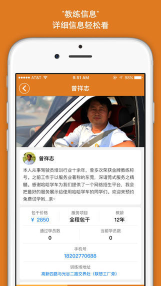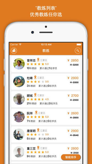 它主要用于教练对学员的信息展示、在线交易和预约练车,实现了地理定位、智能搜索、在线报名、预约练车、学车反馈、经验交流等功能。学员可以通过哈哈学车查看教练的地理位置、培训价格、场地情况、综合评价等,来选择自己心仪的教练进行实地试学,并最终决定报名。