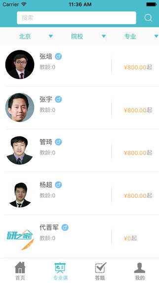 专业课找学长 学习学长经验,更快地制定更优的专业课备考攻略; 通过学长,可以快速了解目标学校及专业课学习情况