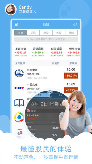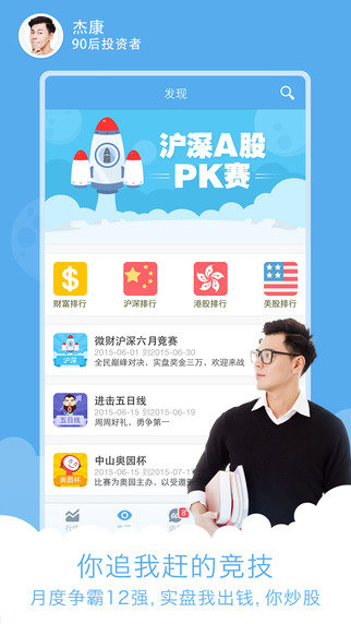 微财软件应用是一款中国唯一一家,提供沪深港美四大市场实践投资的社交平台,我们以模拟炒股竞技比拼、我们围绕投资主题高谈阔论、我们提供实盘奖金培养高手、我们邀请微财粉和投资名家面对面聊天,我们还有许多许多…投资,其实是一种生活方式打开微财,你能找到投资路上真正志同道合的朋友。他们不但分享股票投资的犀利观点,还会分享股票操盘每个细节,分享发现微财高手的心得。