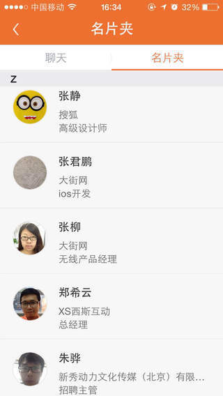 6.交换名片,和心仪的人才及机会发布者交换名片;交换成功后,显示完整姓名和真实头像,保持联系。
