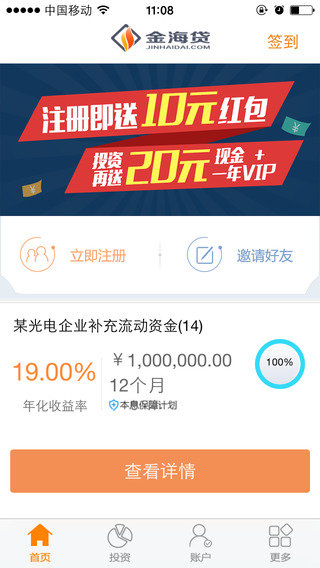 金海贷是一款深圳金海贷金融服务有限公司精心打造的P2P(网络借贷)手机理财软件。在日常生活中我们常常会遇到贷款的困难,在这个时候往往一款这样的金融服务贷款软件就能给我们带来便捷的方式。一机在手,理财高人一筹。该软件将极大地方便用户随时随地投资理财。快来使用吧,手机理财就在金海贷!