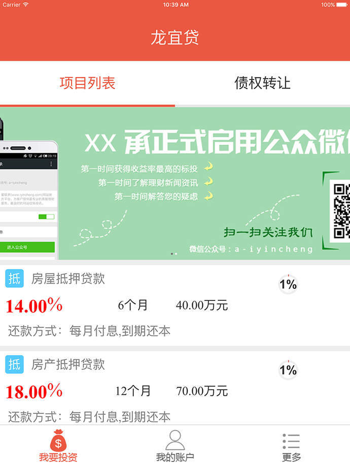 龙宜贷是一个在线互联网金融平台,精选优质产品,安心轻松理财,灵活便捷智能,收益尽在掌握,门槛低,收益高,风险低,安全系数高!你还在等什么,抓紧下载吧!