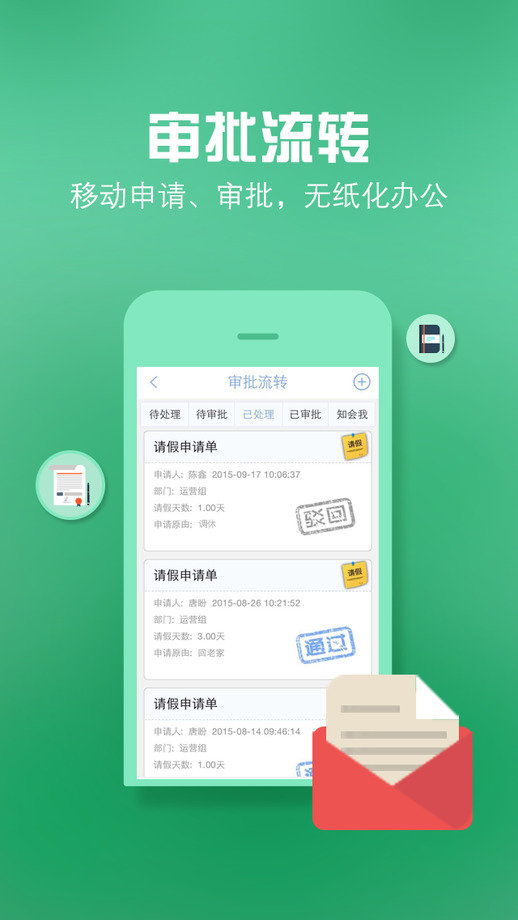 团队协作:任务发起、跨部门协作、审批流转,快速调用公司资源完成工作任务。