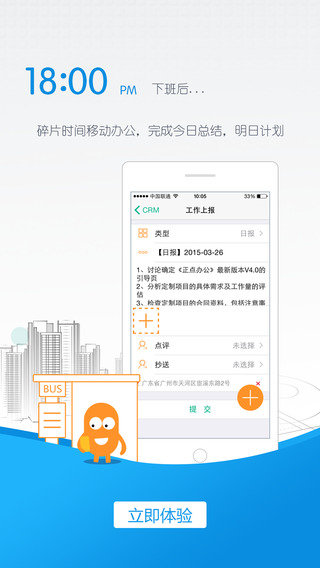正点办公是一款移动办公软件,这款正点办公软件不仅仅是功能给我们带来非常棒的体验,界面也很舒适,员工用手机就能进行考勤签到、工作上报、日程计划、任务协作执行、移动申请及审批、客户笔记和客情分析;企业管理者用手机就能随时随地查看公司运行状况、审批文件、查阅和点评员工工作。