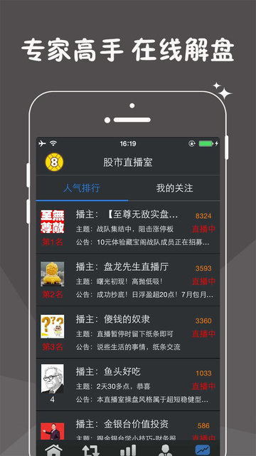 筛选民间稳定盈利高手,与高手切磋炒股技艺。可以免费追踪操盘高手持有股票及交易明细,追随高手操作,高手赚钱你也赚!