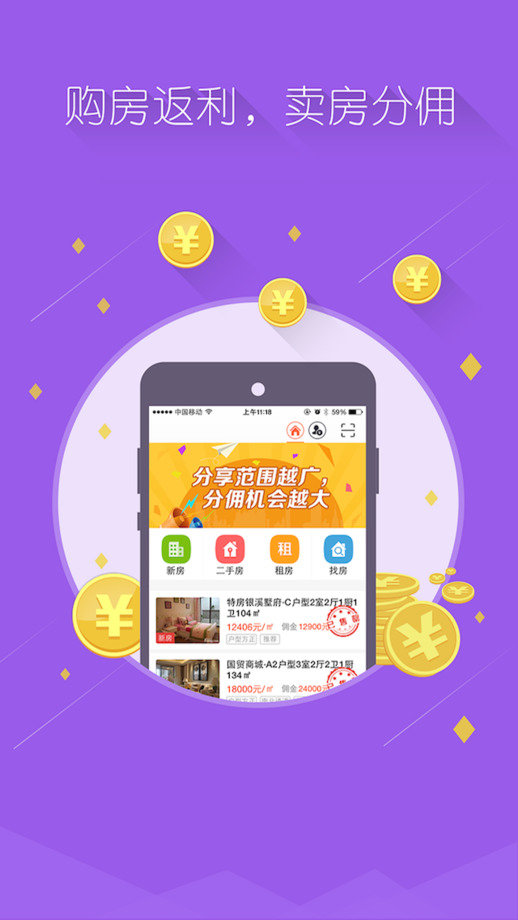 【购房返利】通过来分佣提交看房意向并最终完成房产购买,能获取额外的专属返利!