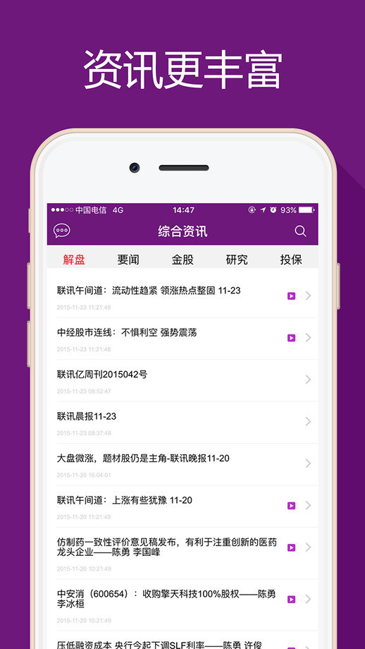3、海量、优质的资讯信息,助您轻松运筹帷幄