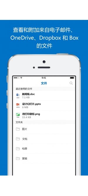 -点击一下即可分享你的会议空闲时间,并可轻松查找与其他人开会的时间。 -无需将文件下载到手机,你可以从电子邮件、OneDrive、Dropbox等查看和附加任何文件。