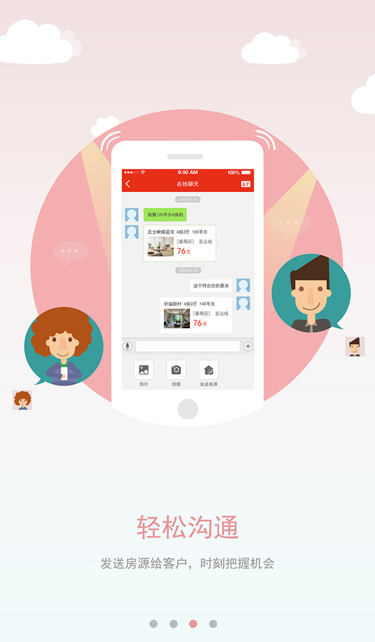 与客户一对一对话,可以发送房源推荐给客户,也可致电客户,沟通无障碍