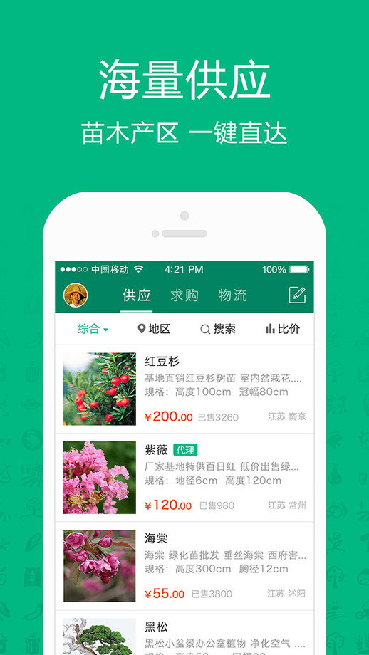 汇农天下是一款农业商务服务软件,是全国首家园林行业综合型服务平台,前期专注于园林全产业链与供应链整合,将线上商城和线下体验中心融为一体。汇农商城板块减少行业中间环节,降低农林资材采购成本,提升效率;苗木供求板块着重解决行业销售难题;植物医院板块汇集行业专家为苗农提供一站式解决方案。