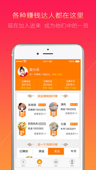 创业赚钱是一款创业赚钱软件,在这里有超多优惠,各种赚钱达人都在这里,创建自己的团队成就创业的梦想。