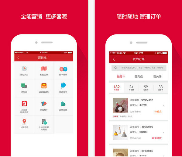随时随地添加商品、查看订单,并可一键分享到微信、微博、QQ空间等多个平台。