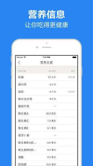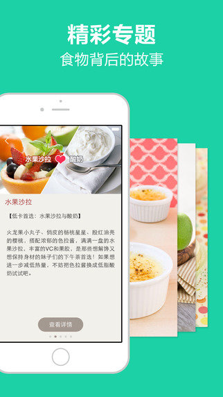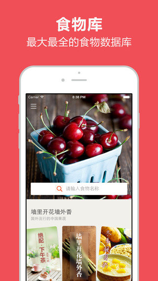 食物库是一款拥有最大最全的食物数据软件。食物库软件为您揭示食物的真是热量,告诉你减肥的时候什么能吃什么不能吃,你还可以了解食物背后的故事。