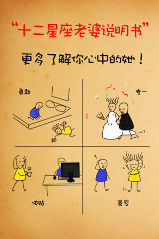 十二星座老婆说明书是一款搞趣类的手机app应用。通过这个软件,你可以更多了解你心目中的她,敲醒你的记忆时钟,能添加对她的生日,重要继而的提醒,记得对她的爱,保养和加温。赶快来加入我们吧!!!!