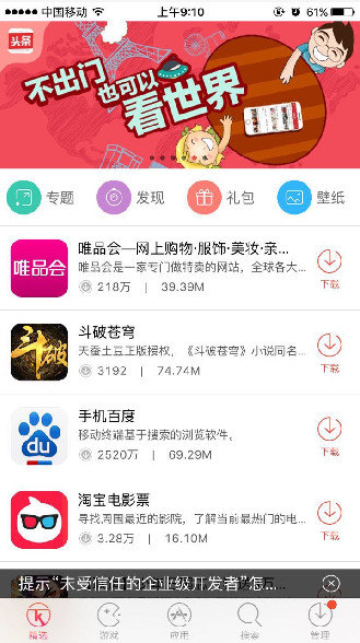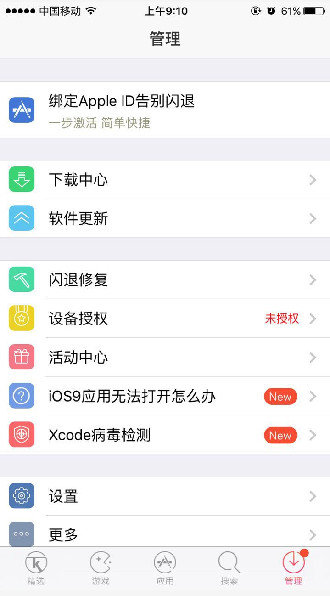 快用苹果助手iPhone版V2.9版本更新,支持IOS9哦!依旧不需要越狱照样直接安装应用,付费应用依旧可以直接安装。