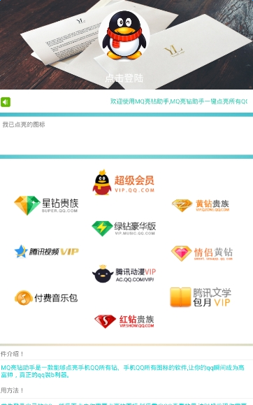 mq亮钻助手是一款能够点亮QQvip图标的辅助工具。所有QQvip图标,在这里,只需手指动动,就可以被点亮哦!需要的小伙伴儿们,赶快来试试吧!