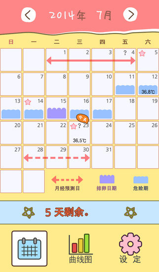 月经(预测)日、排卵日期、性关系日期、危险期、基础体温、心情、症状、备忘录等在Supreme生理日记中简单方便的输入和确认吧。