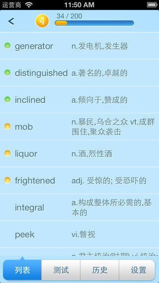 3.单词按照重要性分为5个集合,每个集合代表一个英语词汇能力等级。