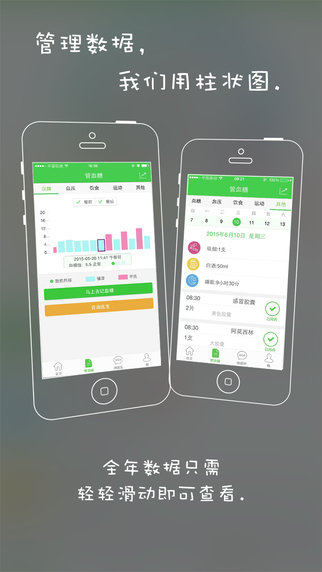 您需要随时记录,检测自己的健康状况吗? 我们有饮食,运动,血糖,血压,睡眠等各项数据的录入,分析,预警功能。