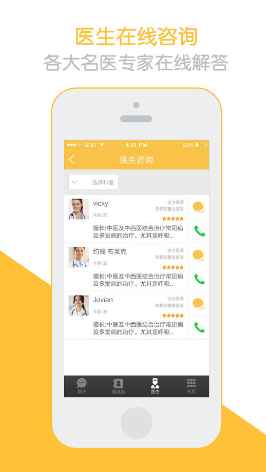 轻松连接专业医生,与医生直接对话,解决看病难问题。