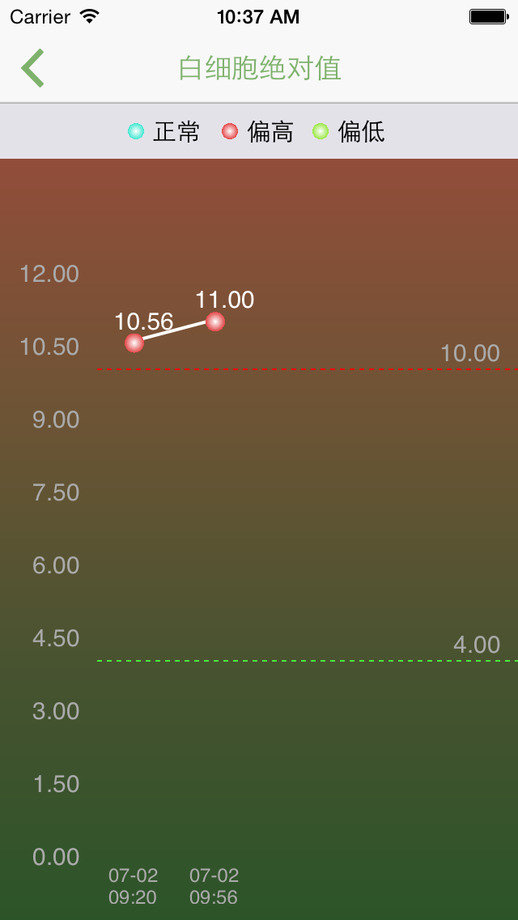 ●检验结果浏览:浏览检验项目列表、检验结果明细、并支持以图表的方式对历次单项目结果值进行对比;