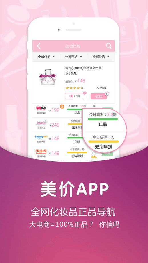 【正品关】美价对收录的认证为正品的产品担保,假货按赔率N倍赔付