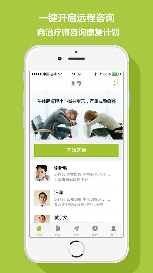 自助选择问题,系统推荐优秀治疗师,为您进行康复指导!