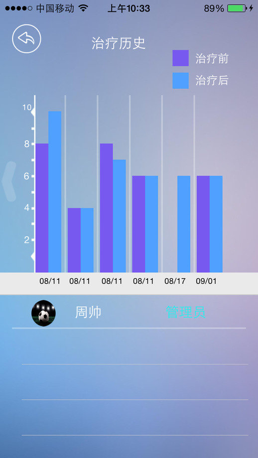 5.在用户治疗结束后可以在治疗历史里查看相对应的治疗记录。
