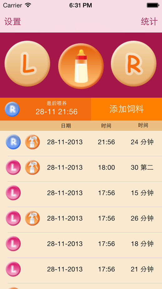 -记录的时间和喂食的时间;