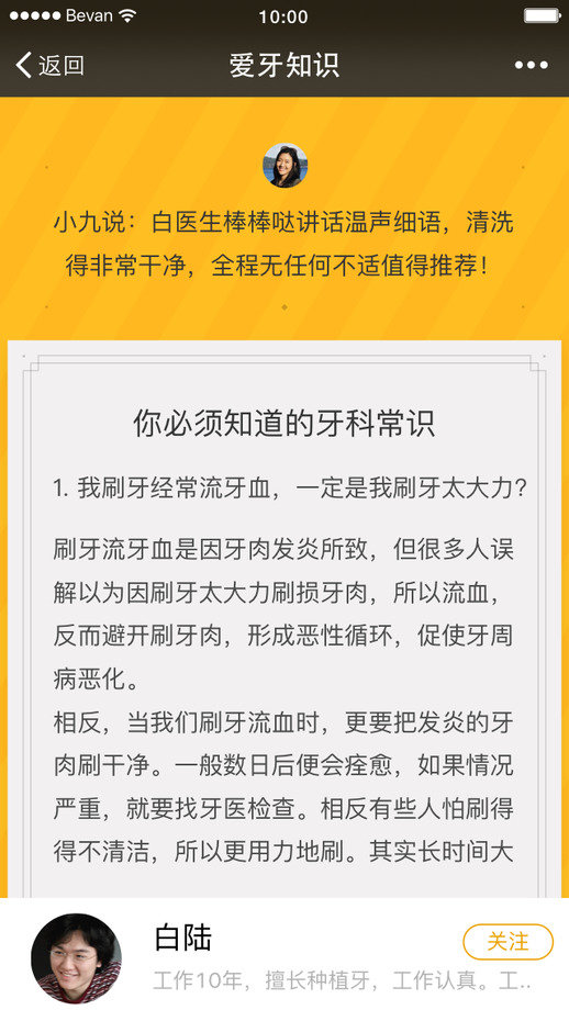 1.来点赞:患者完成诊疗后在我们的产品中写下对医生的好评,让他身边更多的人发现身边的好牙医。