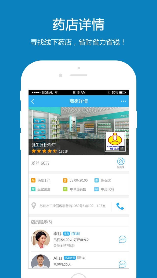 【购药】 图文、电话、语音咨询,多渠道沟通帮你快速买药,更可查看药店优惠信息,查找送药上门的药店哦!