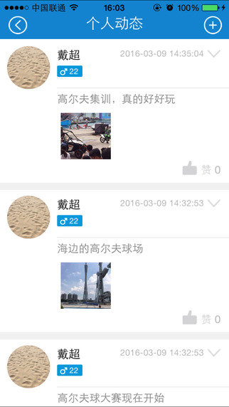 我的动态:客户和教练可以通过拍照和文字描述发布个人动态,展示陪练过程信息。