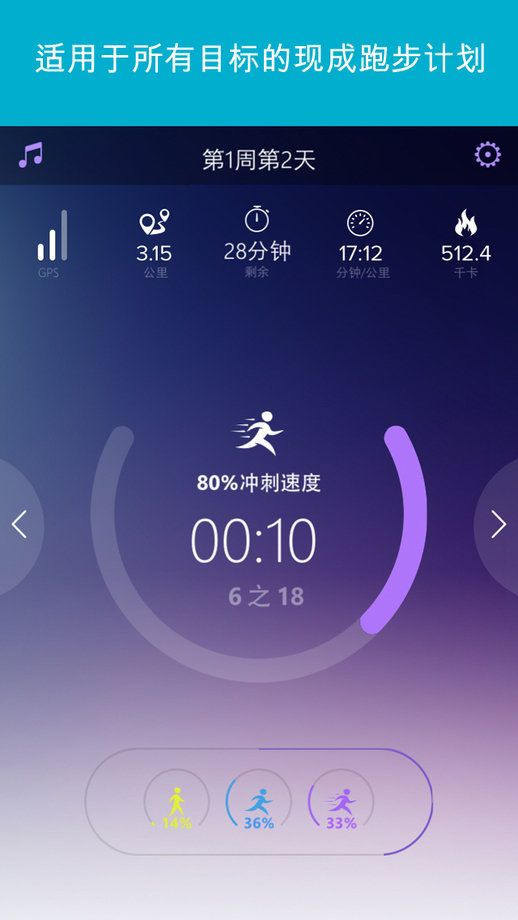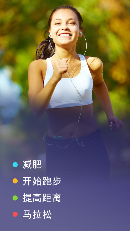 训练计划例子 -初跑者专用; -5公里&10公里; -提高速度和体力; -跑步瘦身; -为半马拉松及马拉松备训; -以及更多。
