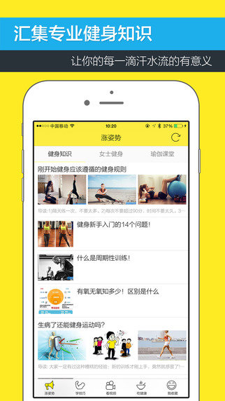 涨姿势-包含健身知识、女士健身、瑜伽课堂三大板块,内容丰富,男女皆宜。