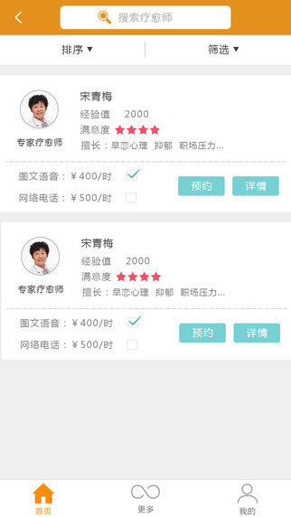 1、一站式预约咨询:与心理咨询师时时在线交流,直接在线预约和支付,即可享受一对一咨询服务