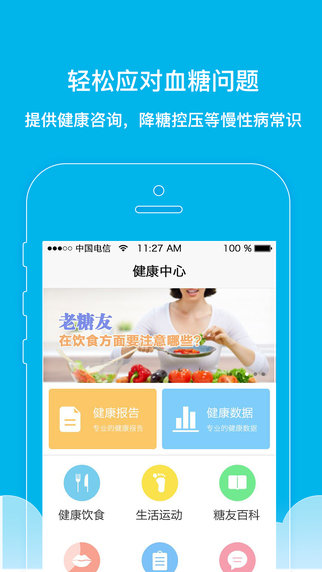4.健康咨询,提供糖尿病常识、饮食禁忌等方面的降糖控压等慢性病常识,助您轻松应对慢性病。