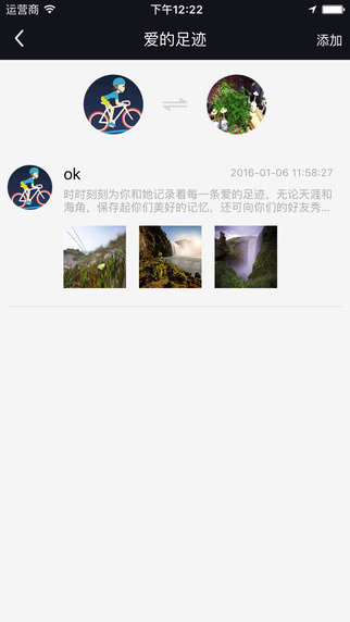 7、爱的足迹 时时刻刻为你和她记录着每一条爱的足迹,无论天涯和海角,保存起你们美好的记忆,还可向你们的好友秀出你们爱的足迹。