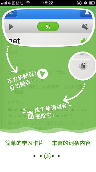 5、贴身定制的单词表,丢掉你最熟悉的词。 总有些单词从小学伴随到大学的词表?看得恶心了?把apple这种词给丢掉吧!