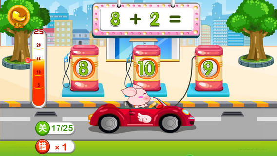 宝宝开车学数学是一款教育宝宝学习数学的软件。在这里宝宝可以选择自己喜欢的小车,通过一系列的有趣的事情让宝宝学习数学知识,简单轻松有趣。宝宝们依次要通过加油站、红绿灯路口、收费站和赛车场四个关卡,每个关卡需要完成25道计算题,用宝宝们最喜欢的开汽车游戏来锻炼宝宝20以内的加减法运算能力,让宝宝们边玩边学!