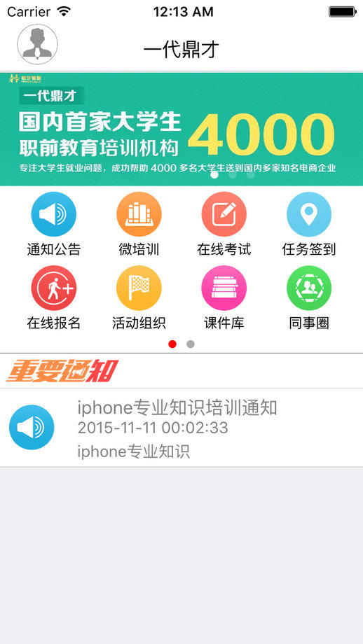 鼎才教育是一款在线教育管理类软件,是一款专为一代鼎才培训公司打造的在线移动教育软件。为企业提供在线培训及考试系统,企业可以通过这款软件向员工发布通知、培训、考试、签到、报名、活动等相关的信息。同时也提供同事圈等功能让用户可以进行互动。