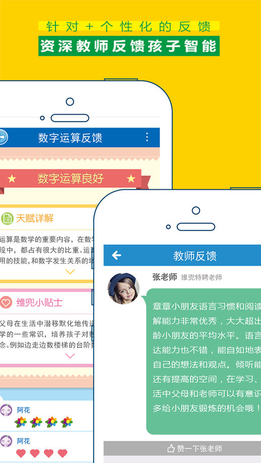 【天赋反馈】通过家长和孩子多元互动,反馈孩子在某一方面或几方面的智能,发现孩子天赋,更了解孩子。