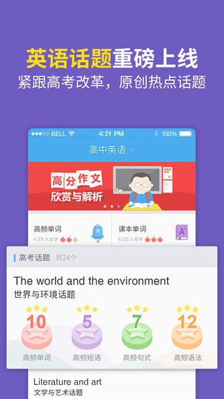 百度高考是一款高考学习助手软件,英语话题重磅上线,紧跟高考改革,原创热点话题;趣味刷题,名校套卷,勇闯学霸榜,走进名牌大学。