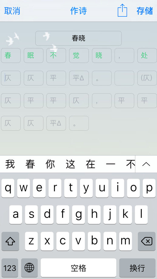 模版给出了字数,平仄以及韵脚,方便你用手机开始诗词创作。
