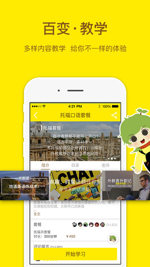 外教君是一款外语教学软件,为您提供了看高效的学习外语的方法和功能,希望能够让您提高自己的学习成绩。旨在打造与海外名校资源对接的智能外语口语学习APP--一键呼叫英美外教,我们的团队成员来自哈佛,耶鲁,宾大等全美最顶尖的名校,以优秀的师资,生动的内容和科学的教学方法打造最简便有效英语学习方法。